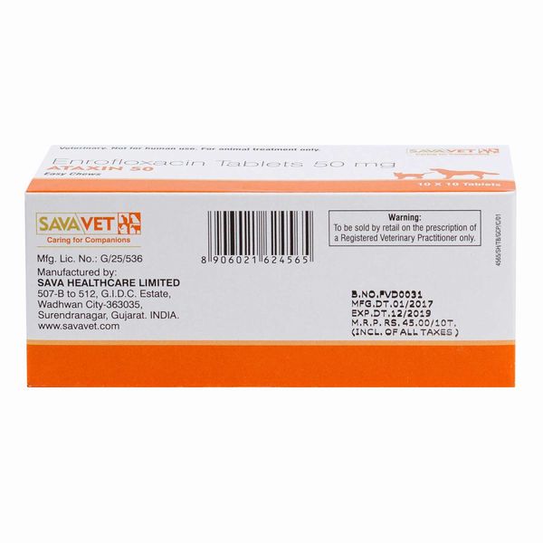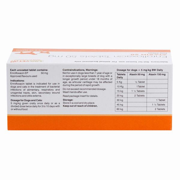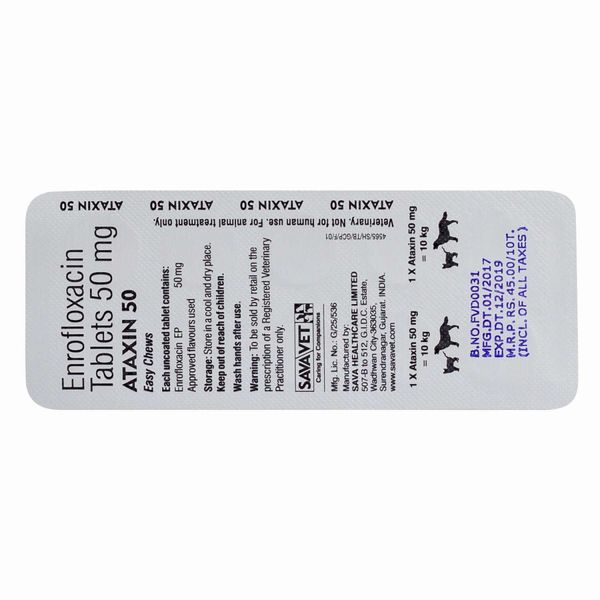 ・アタキシン50mgは広域スペクトルなニューキノロン系抗生剤で、エンロフロキサシンを有効成分とする様々な細菌に幅広く効果のあるお薬です。